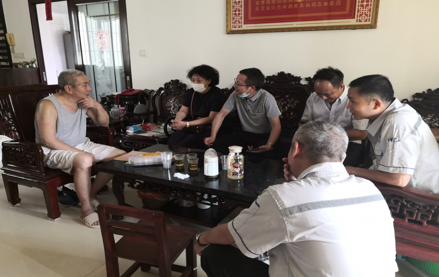 6月30日下午,公司黨總支書記周樂人帶領(lǐng)各黨支部書記來到幾位慰問對象家中,為他們送去米、油等慰問品和慰問金。每到一處,周樂人都與退休黨員和困難職工促膝交談,仔細(xì)詢問他們的身體情況和生活情況,轉(zhuǎn)達(dá)組織對他們的關(guān)心和問候??赐诵堇宵h員時,周樂人指出,老黨員是我們黨的寶貴財富,他們忠誠的品格和吃苦耐勞的精神值得我們傳頌和學(xué)習(xí),他對老黨員們?yōu)楣镜母冻霰硎玖烁兄x,并囑咐他們要多注意飲食營養(yǎng)、保重身體,希望他們一如既往地關(guān)心、支持公司發(fā)展。在看望困難職工和新冠肺炎康復(fù)者時,周樂人仔細(xì)了解了員工的情況,并勉勵他們要以積極的心態(tài)渡過難關(guān),通過奮斗把生活過得越來越好。周樂人還叮囑隨行人員,對退休黨員和困難職工要多關(guān)注、多關(guān)心,幫助他們解決實際問題。