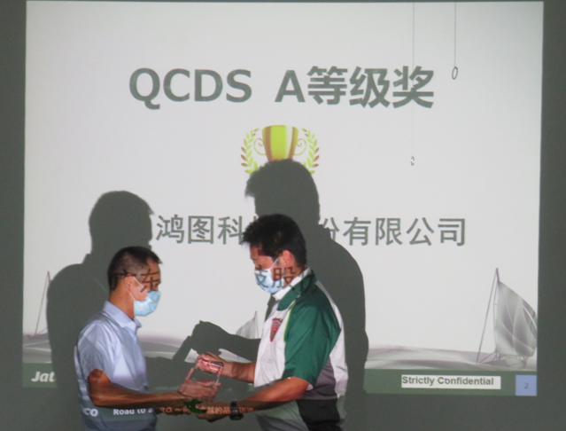 8月12日下午,公司壓鑄(本部)副總經(jīng)理陳參強(qiáng)帶隊(duì)加特可項(xiàng)目組主要成員參加了加特可(廣州)的頒獎(jiǎng)儀式。我司榮獲加特可(廣州)FY19 QCDS A等級(jí)獎(jiǎng)。QCDS A等級(jí)獎(jiǎng)是指在產(chǎn)品品質(zhì)、成本、交付與協(xié)力度四個(gè)方面綜合評(píng)價(jià)最高的獎(jiǎng)項(xiàng),這也是我司連續(xù)第二年獲此殊榮。陳副總發(fā)表感謝辭,并就我司疫情防控期間的生產(chǎn)情況與未來發(fā)展規(guī)劃進(jìn)行現(xiàn)場(chǎng)匯報(bào),雙方也就今后的合作進(jìn)行了深入探討。