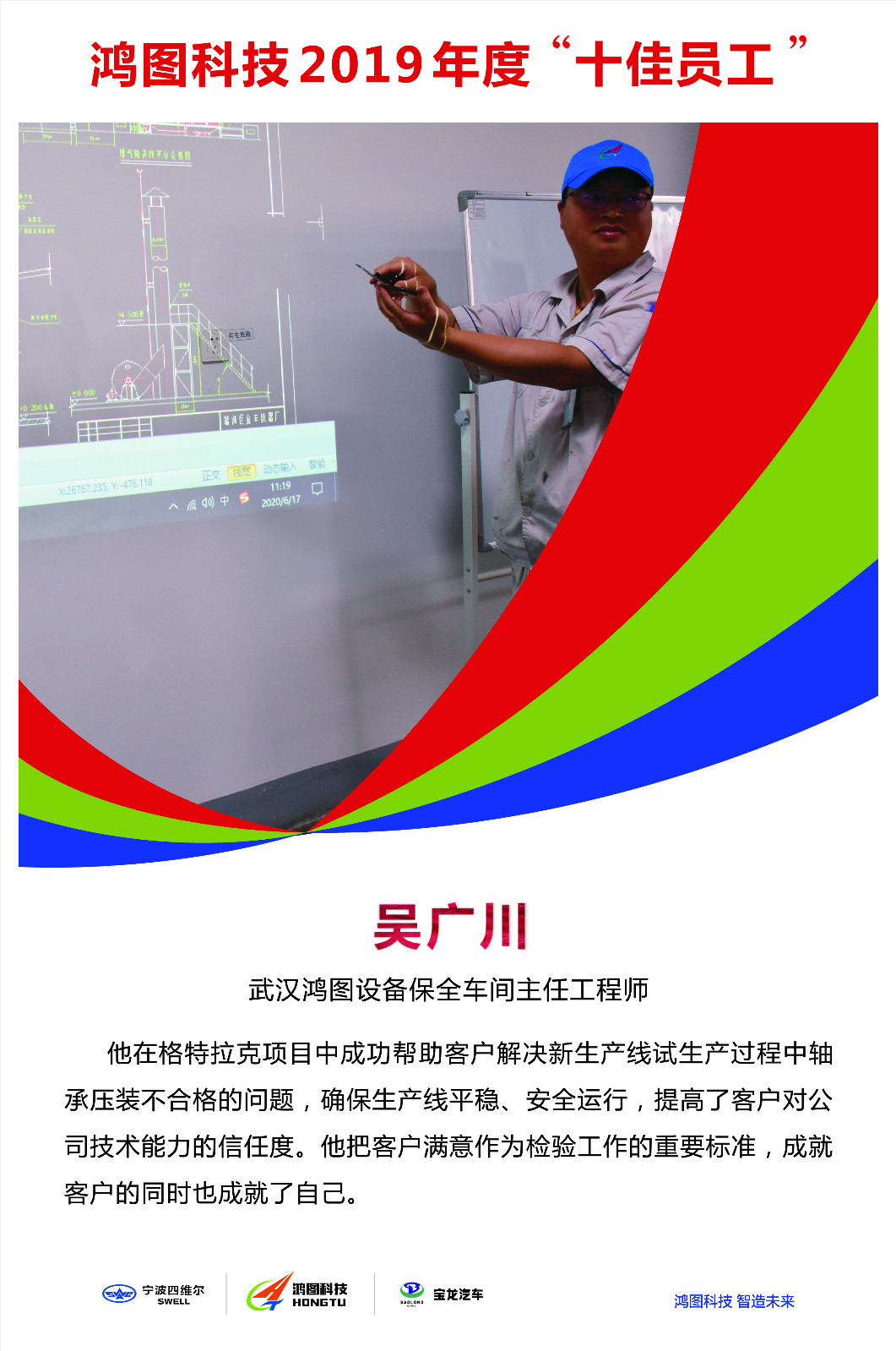 作為武漢鴻圖設(shè)備保全車間主任工程師,吳廣川主要從事專用機(jī)械設(shè)備及工裝夾具的技術(shù)改進(jìn)和難點(diǎn)攻關(guān)工作。入職以來,他曾擔(dān)任過數(shù)控設(shè)備工程師、主任工程師。他始終秉承著客戶導(dǎo)向的核心價值觀,持續(xù)為公司創(chuàng)造價值。