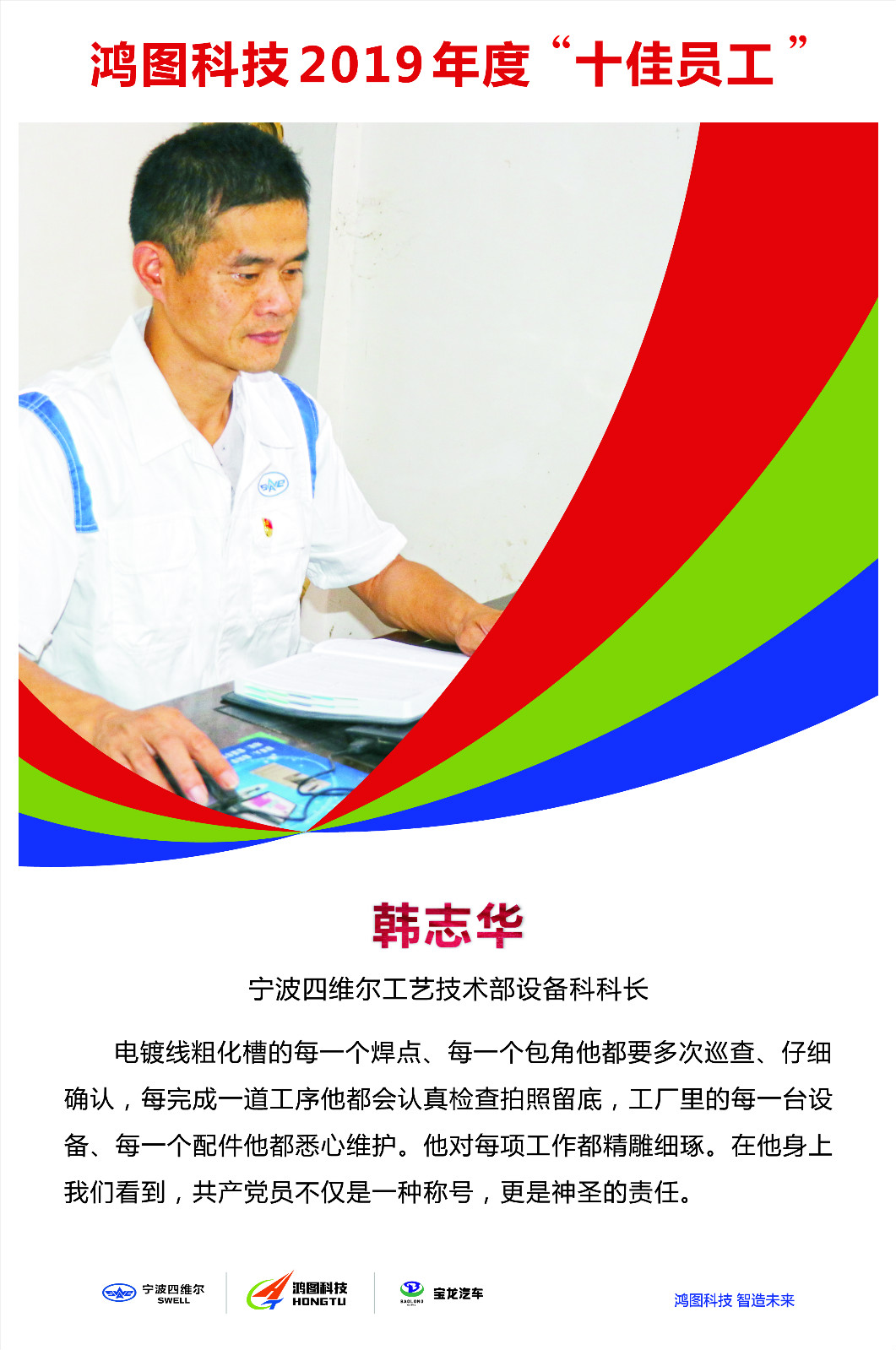 作為寧波四維爾工藝技術(shù)部設(shè)備科長,韓志華主要從事設(shè)備維護(hù)及設(shè)備性能提升相關(guān)工作。入職以來,他曾擔(dān)任過設(shè)備維修員、設(shè)備維修班長、設(shè)備科科長等職務(wù)。