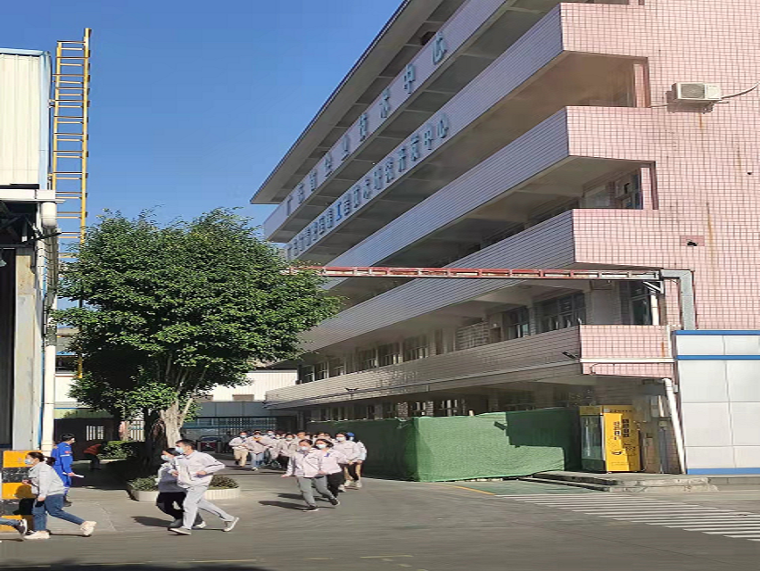 情景二模擬公司科研樓四樓因電線短路造成火災(zāi)?,F(xiàn)場(chǎng)人員第一時(shí)間報(bào)警,并使用干粉滅火器對(duì)起火點(diǎn)滅火。在火險(xiǎn)警鈴響起后,各部門(mén)組織員工有序撤離到安全區(qū)域,整個(gè)過(guò)程僅用時(shí)1分56秒。消防人員抵達(dá)現(xiàn)場(chǎng)后,通過(guò)云梯成功將被困人員救出,并迅速控制火情。