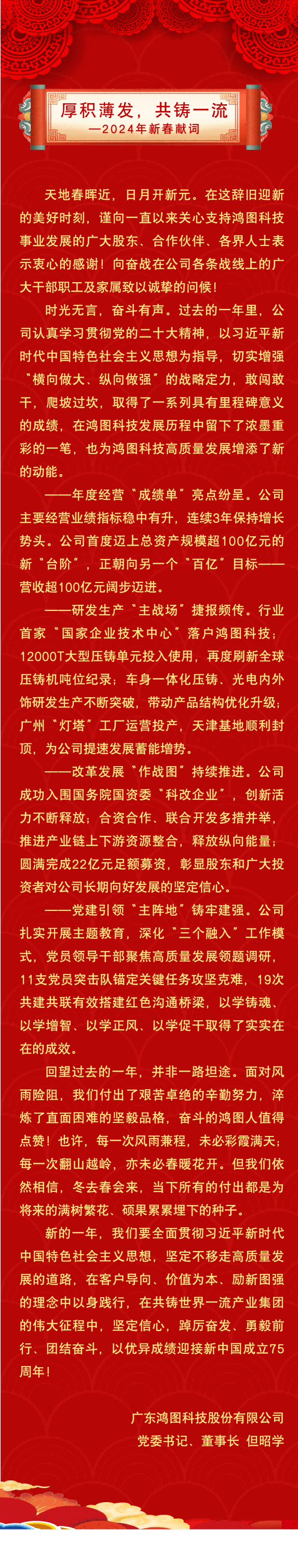 厚積薄發(fā),共鑄一流——2024年新春獻(xiàn)詞