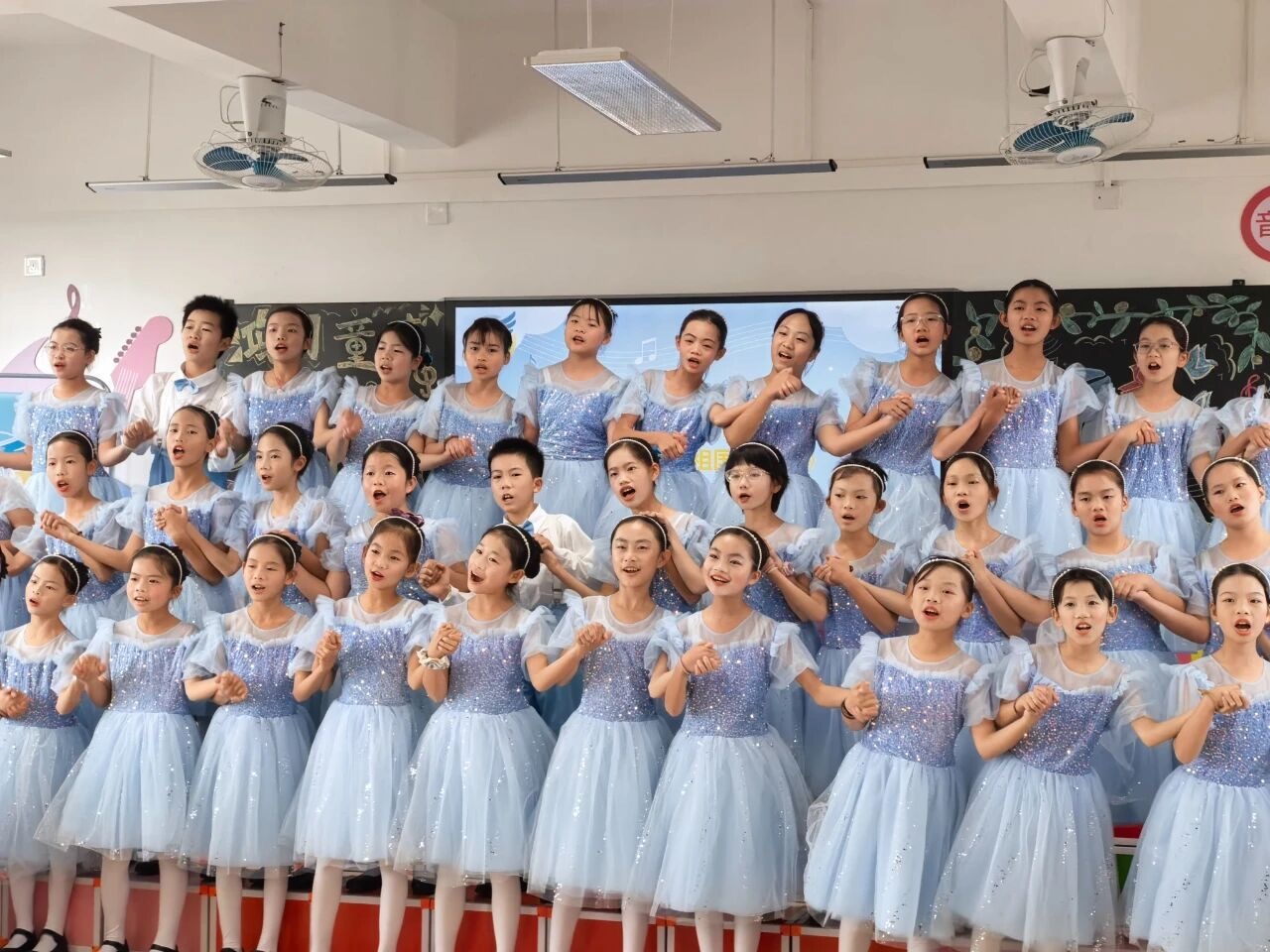合唱團(tuán)以蜆崗鎮(zhèn)中心小學(xué)為主陣地,經(jīng)過(guò)層層選拔,最終集結(jié)43名熱愛(ài)歌唱的學(xué)生。自2025年10月起,合唱團(tuán)已形成常態(tài)化教學(xué)機(jī)制,每周開(kāi)展2次系統(tǒng)培訓(xùn),既夯實(shí)樂(lè)理基礎(chǔ)、發(fā)聲技巧等核心素養(yǎng),又通過(guò)舞臺(tái)展演、錄音實(shí)踐等多元化形式,讓鄉(xiāng)村青少年在家門(mén)口享受到優(yōu)質(zhì)均衡的美育資源,有效提升綜合藝術(shù)素養(yǎng)。